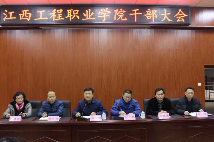 1月5日上午,学院召开干部大会,宣布江西广播电视大学党委关于调整江西工程职业学院领导班子的决定。校党委副书记黄平槐出席会议并讲话,校党委委员、党委组织部部长熊江鹏主持大会。学院副科级以上干部、副高以上职称教师参加大会。
