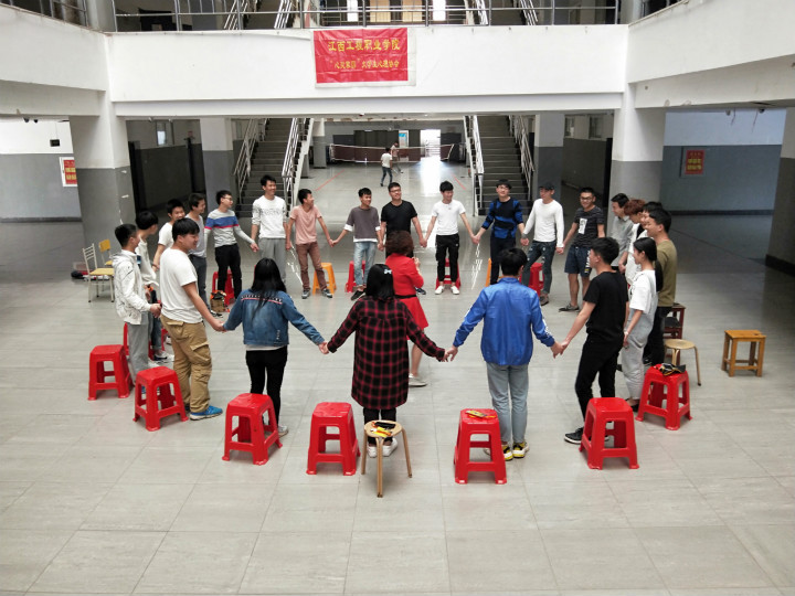 4月19日下午,学工处心理健康教育中心罗娅萍老师对大学生心理协会“心灵家园”学生开展了一场以“相亲相爱一家人”为主题的团体辅导活动。团辅活动设置了四个活动环节:棒打薄情郎、信任之旅、我们的承诺、相亲相爱一家人。通过此次团辅活动,同学们走出课堂,走出教室,在轻松活泼的氛围中学习了心理学知识,培养了集体意识和团队精神,促进了大学生心理健康发展。
